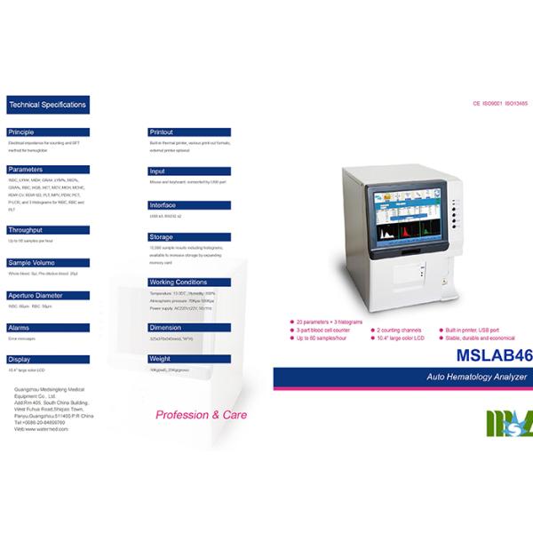 10.4'' large color LCD 3 Part Fully Automated Hematology Analyzer MSLAB46